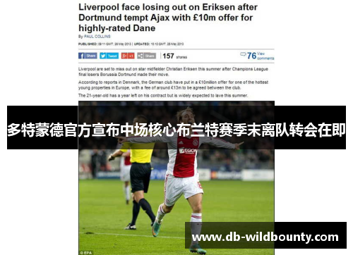 多特蒙德官方宣布中场核心布兰特赛季末离队转会在即
